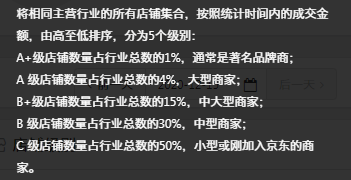 以上產(chǎn)品層面基本帶到,那么下面來看下店鋪層面。說流量,最基礎(chǔ)的點(diǎn)在于我們的店鋪層級,京東的層級是分為A+、A、B+、B、C 。層級越高是代表獲得流量的天花板越高,我們?nèi)粘P枰嘧鰯?shù)據(jù)維護(hù),保證我們的層級相對穩(wěn)定且有所提升,這樣我們的流量天花板會越來越高,后續(xù)也能帶來更多的流量。