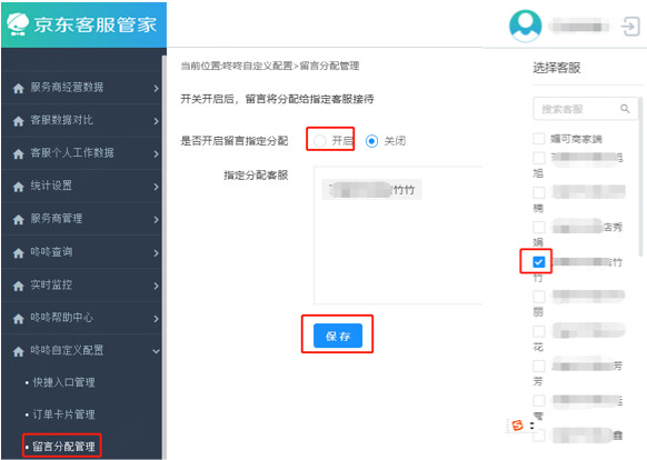 作為運營經(jīng)理或者店長,我們可以設(shè)置指定某個或某幾個客服接待留言。