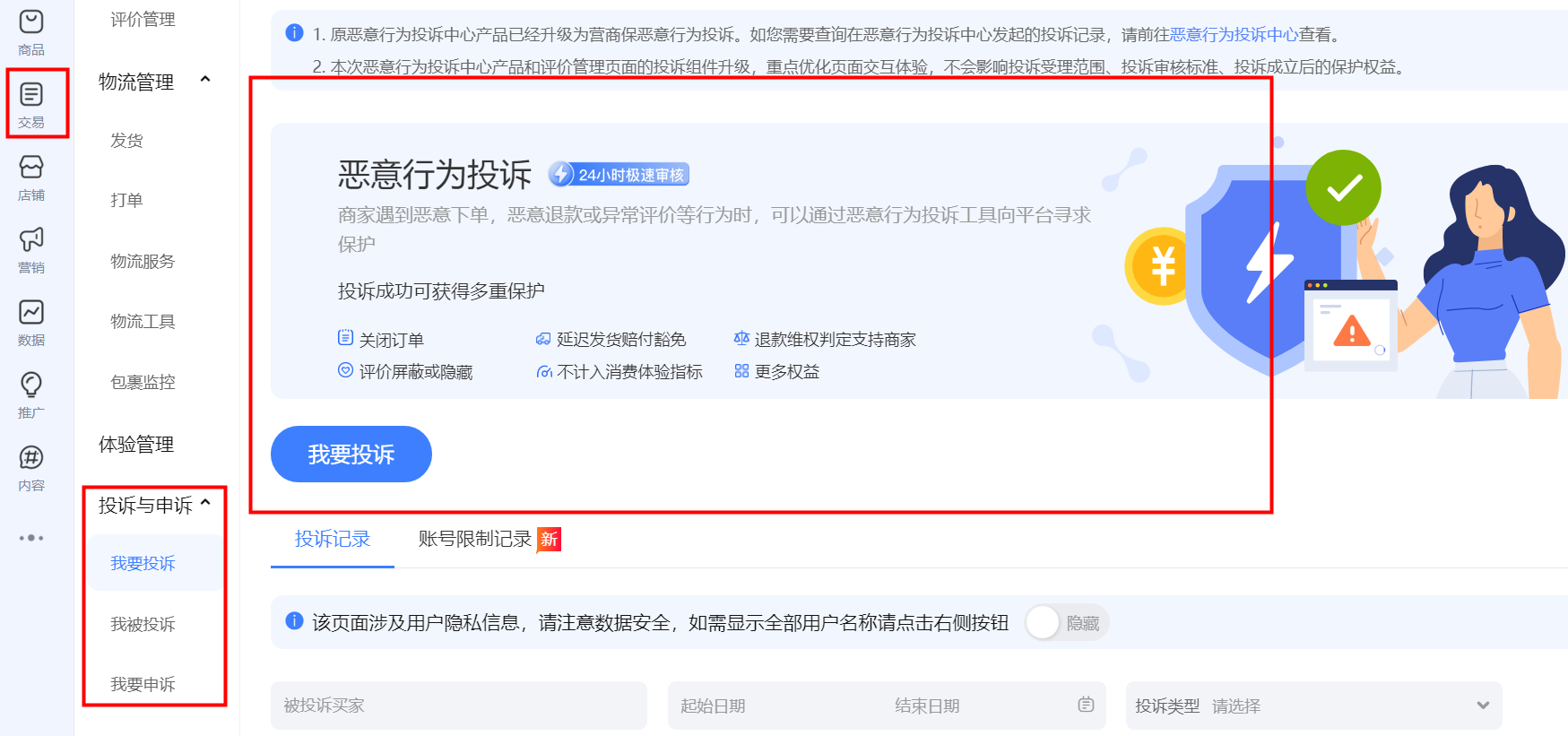 我們需要登錄千牛,點擊客戶服務(wù)—惡意行為投訴中心